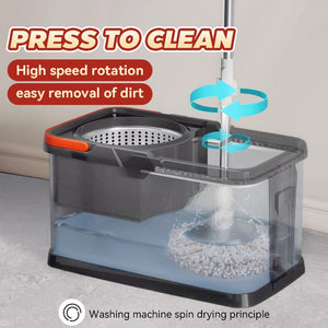Simply place the mop in the vibrating screen and pull it up and down to make the wet mop easy to dry. The mop head can rotate. 360 degrees