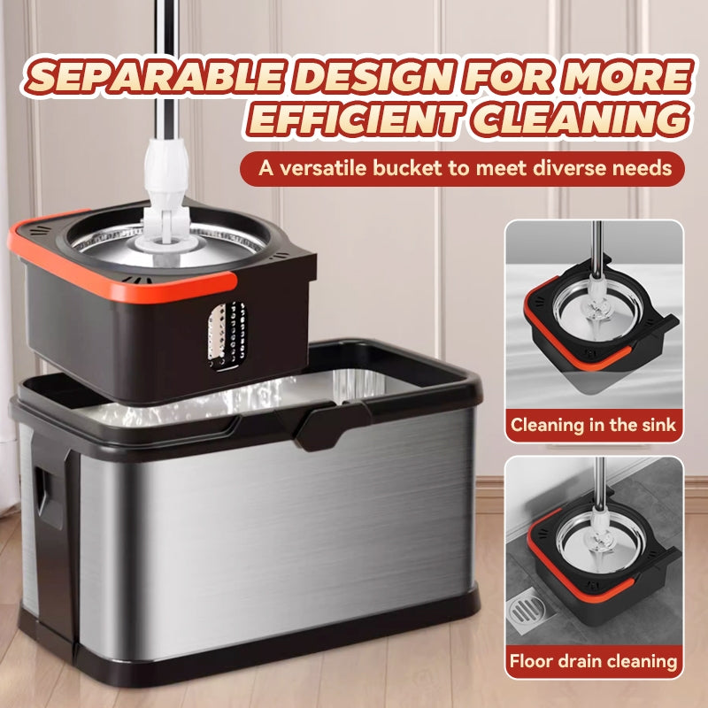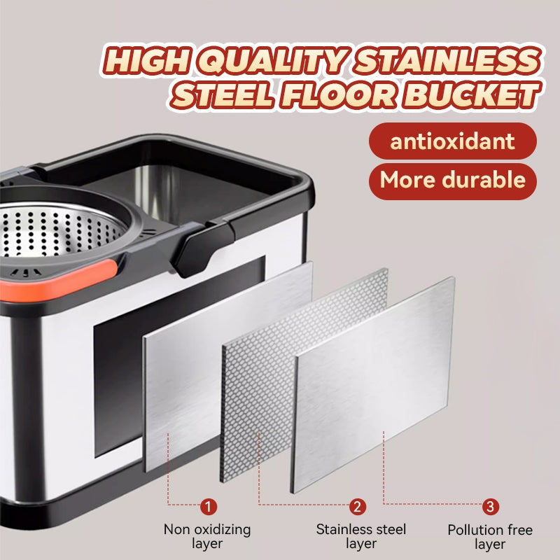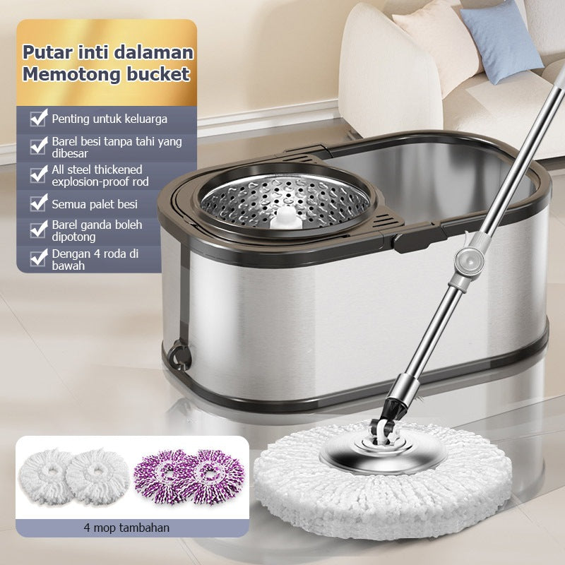 【4 Free Mops】MOK Mop+Mop Bucket Household Stainless Steel Large Mop Durable Saving Time And Manpower