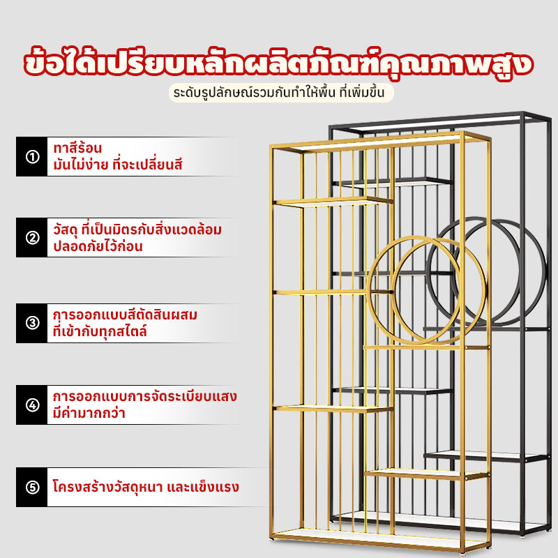 MOK 120*30*190cm Gold/Black Partition Display Shelves With High Load-Bearing Capacity And Large Shelf Space
