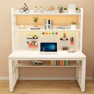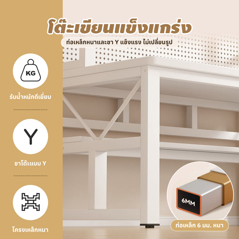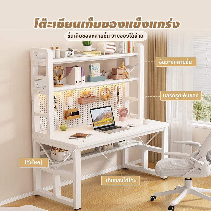 📚 Desktop is designed specifically for office workers and gamers who use computers. It features a double K-leg design that can withstand double the weight. Thick table legs. The table frame and shelves are combined together, sturdy and durable. The shelves use double-layer high perforated board shelves to increase storage space. The desktop is flat and wide, suitable for placing various devices. The rounded corner design avoids collisions, and the appearance and quality coexist, with a stylish and generous appearance. This gaming table has a high cost performance ratio and is very suitable for your office and gaming needs.