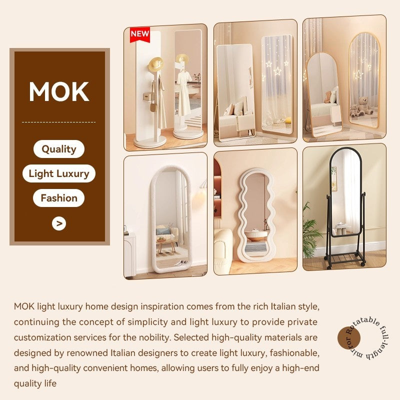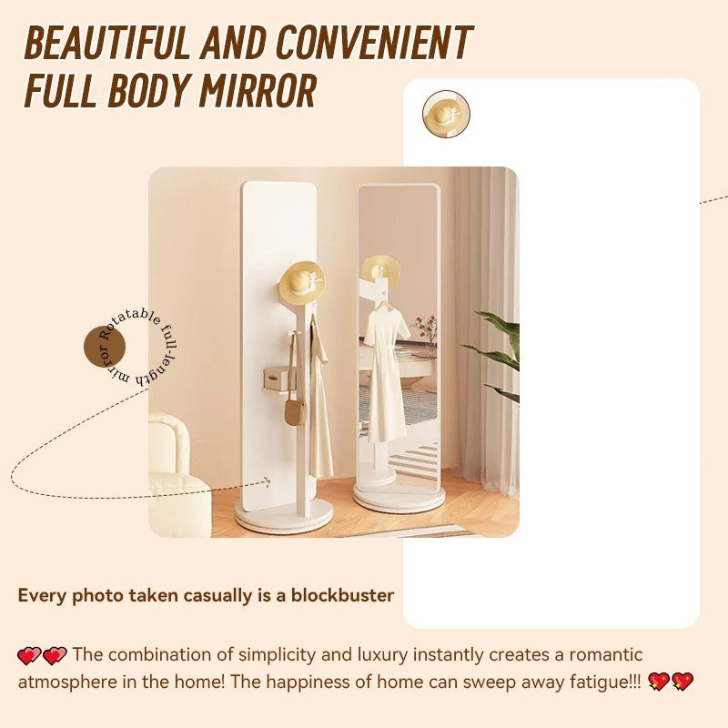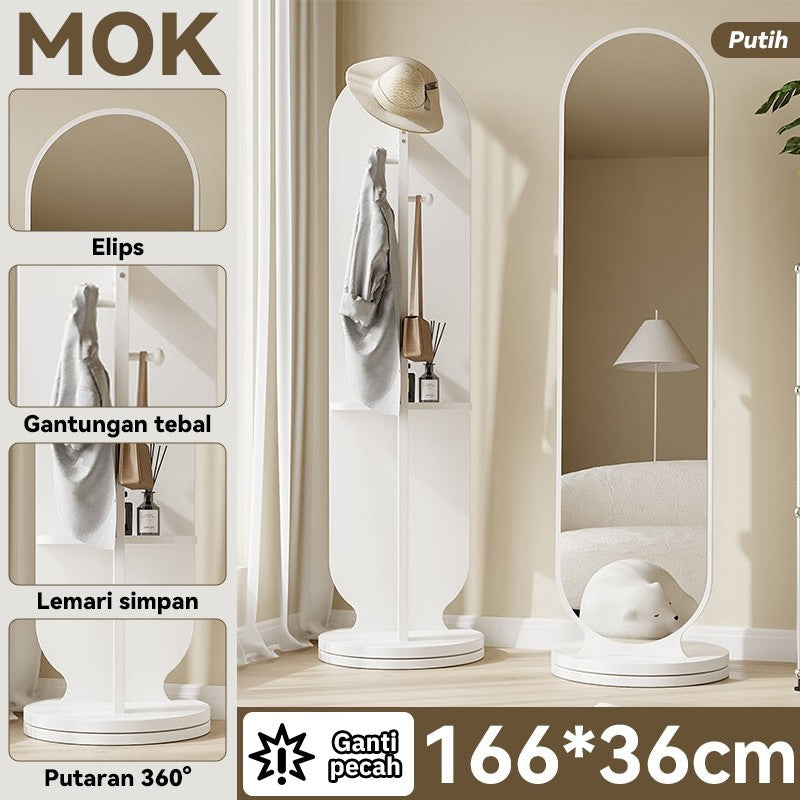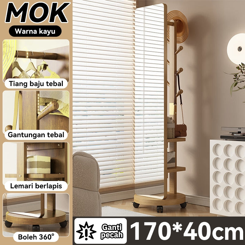 MOK 165cm Cermin 360 ° Rotating Chassis Glass+Clothes Rack+Storage Rack Three In One