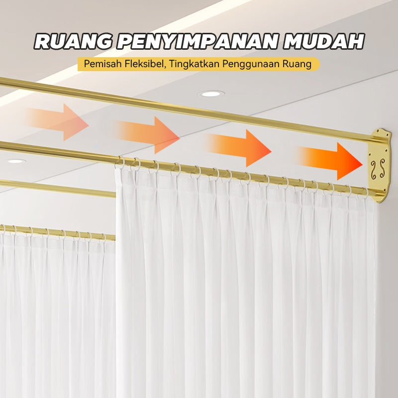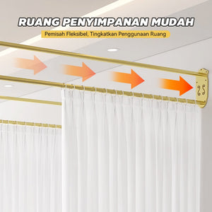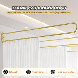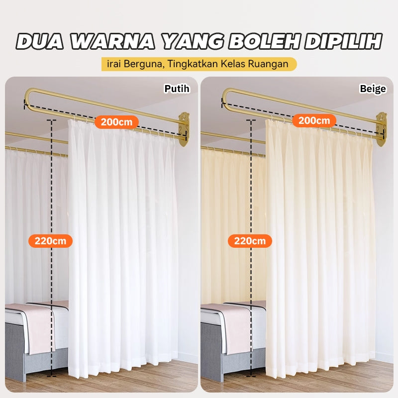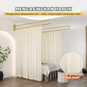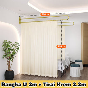 MOK 2M Steel U Curtain Room Barrier White / Gold Bed Curtain Shading Stable Beauty Store / Health Tank