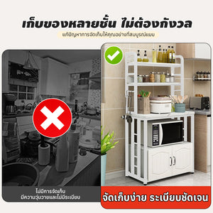 ðãFlexible Storage SpaceãWith five spacious tiers, this rack provides ample storage. The top tier is perfect for storing oil bottles and canned food, while the lower tiers can hold microwave ovens, rice cookers, and other kitchen appliances, keeping your kitchen tidy and organized.