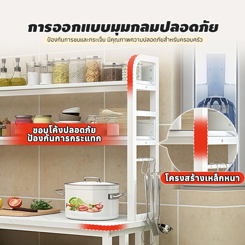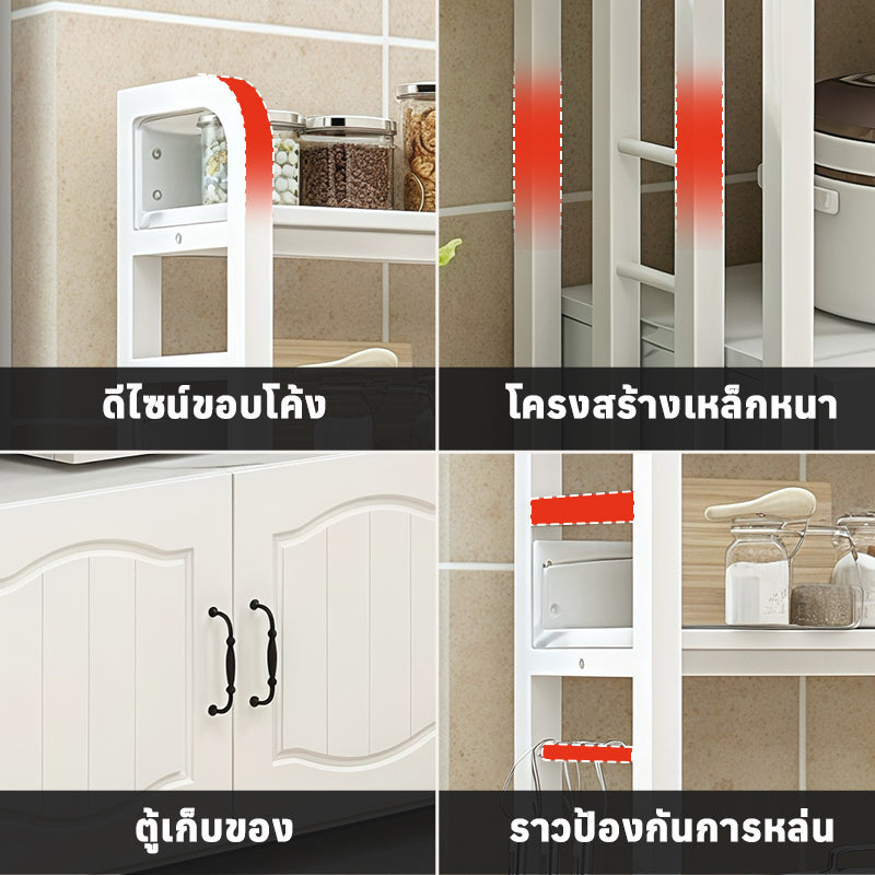 ðãProtective DesignãEach tier is equipped with protective rails to prevent items from falling. It's especially useful for storing small items like spice bottles and dishware, offering enhanced safety and convenience.
