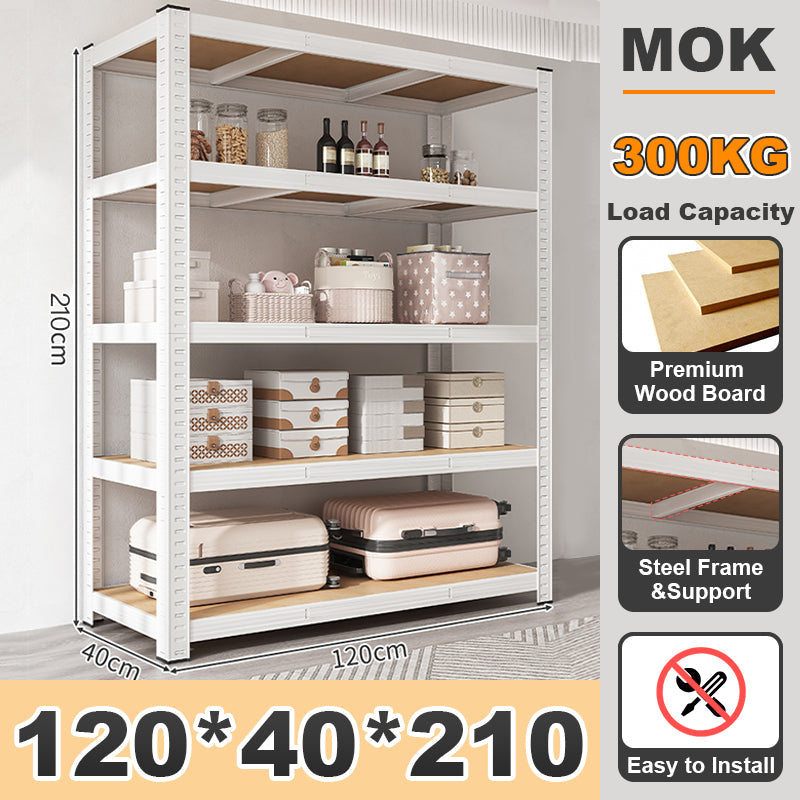 ✅ 【 MOK SIZE & HEAVY DUTY 】 : ① It is wide & deep size (120*40CM ) and can store any large things enough. ② The Z-beam can be installed underneath Laminated board to hold the support beam more firmly. ③ According to the number of installations of Z-beam, the load capacity per tier increases, so you can store heavy duty in a sturdy and stable. Each layer can bear 60KG, the 3-layer shelves can bear 180KG, and the 5-layer shelves can bear 300KG.