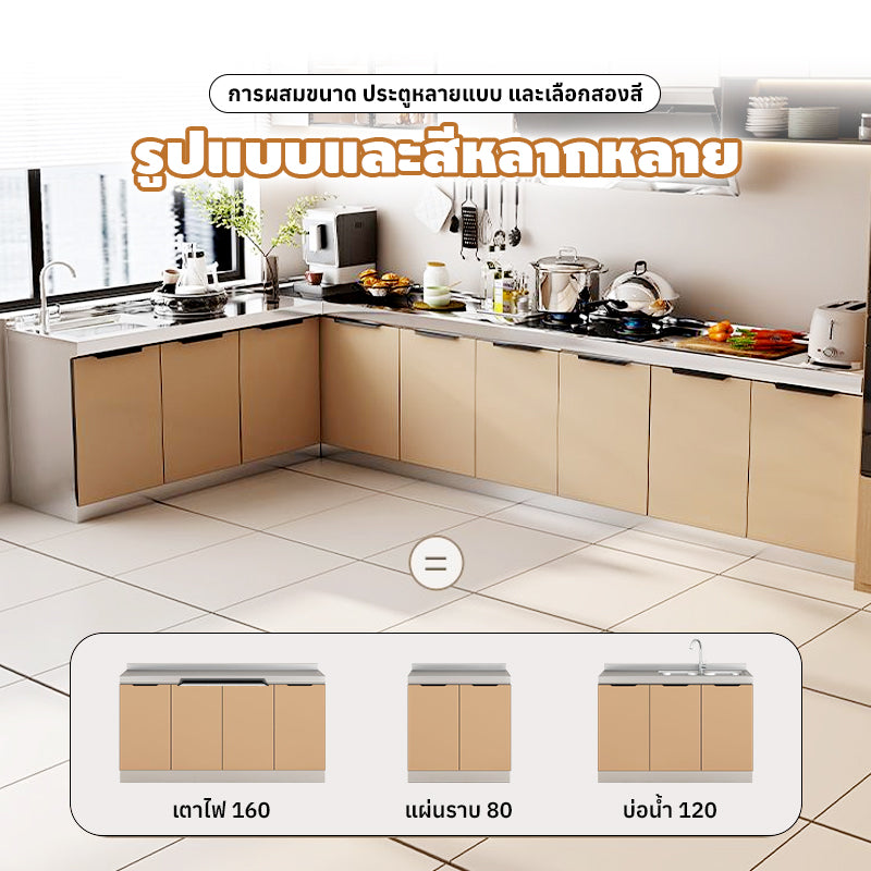 MOK Stainless Steel Kitchen Storage Cabinet Sets kichen Sink Base Simple Cabinet Stove Storage Cupboard Kabinet Dapur Gas Almari dapur murah