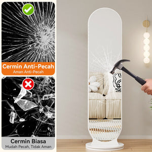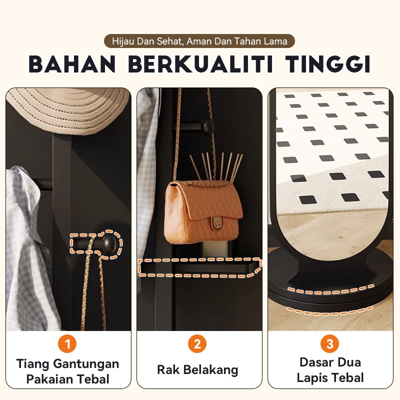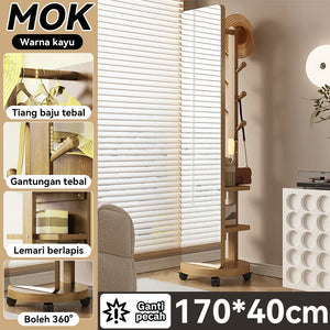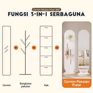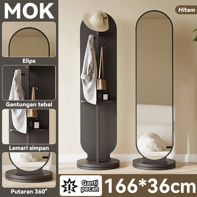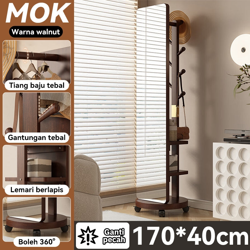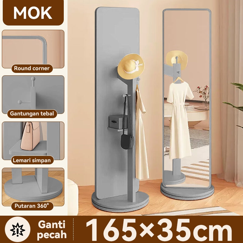 【Upgraded Version】MOK 166*36cm Cermin 360 ° Rotating Chassis Glass+Clothes Rack+Storage Rack Three In One